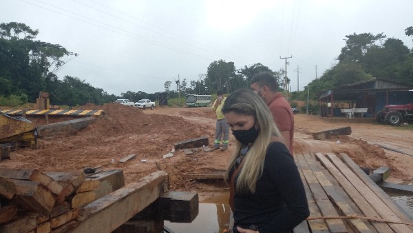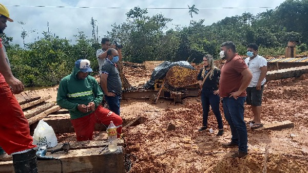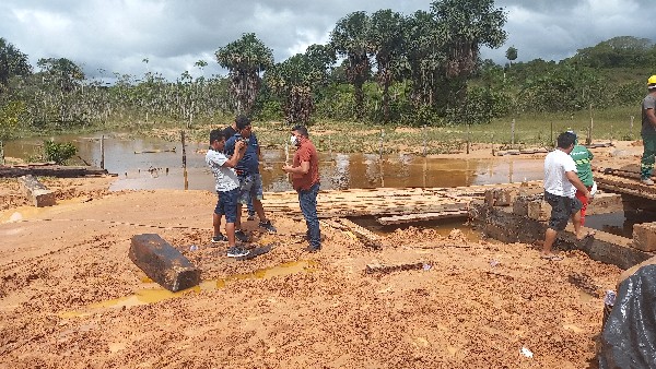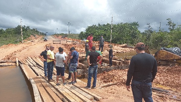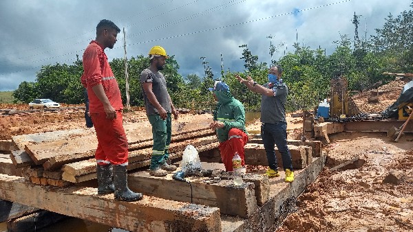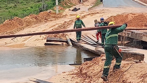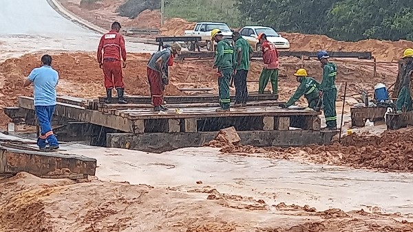 Uma ponte provisória de madeira está sendo feita para liberar a via, e segundo o encarregado da obra, em 45 dias será concluída a ponte de concreto.
